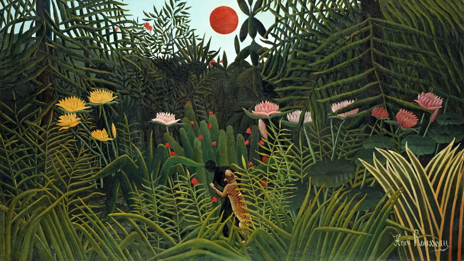 Month Discover: Henri Rousseau's Virgin Forest with Sunset (1910). Original from the Kunstmuseum Basel Museum.